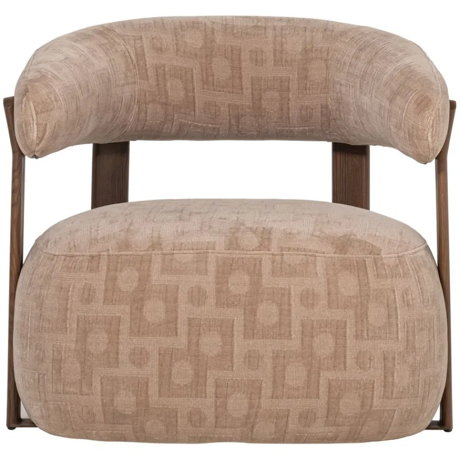 Fauteuil Foon brengt met zijn robuuste ontwerp en zachte rondingen een serene sfeer in elke ruimte. Het zichtbare houten frame vormt een stijlvol contrast met de zitting en de rugleuning, die bekleed zijn met een stof met een subtiel patroon. Door de neutrale zandkleur is deze fauteuil eenvoudig te combineren binnen uiteenlopende interieurstijlen, van modern tot landelijk.