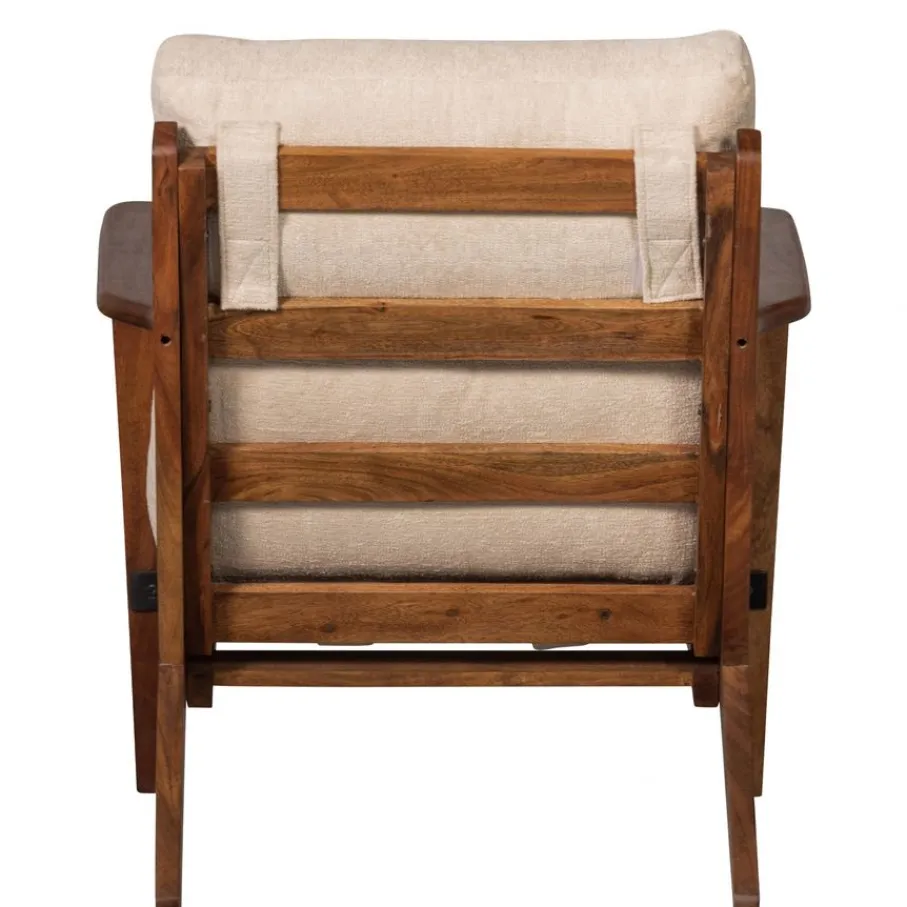 - Een karakteristieke blikvanger! Het natuurlijke acaciahout met zichtbare nerven en knoesten geeft elke fauteuil een eigen unieke ziel.
