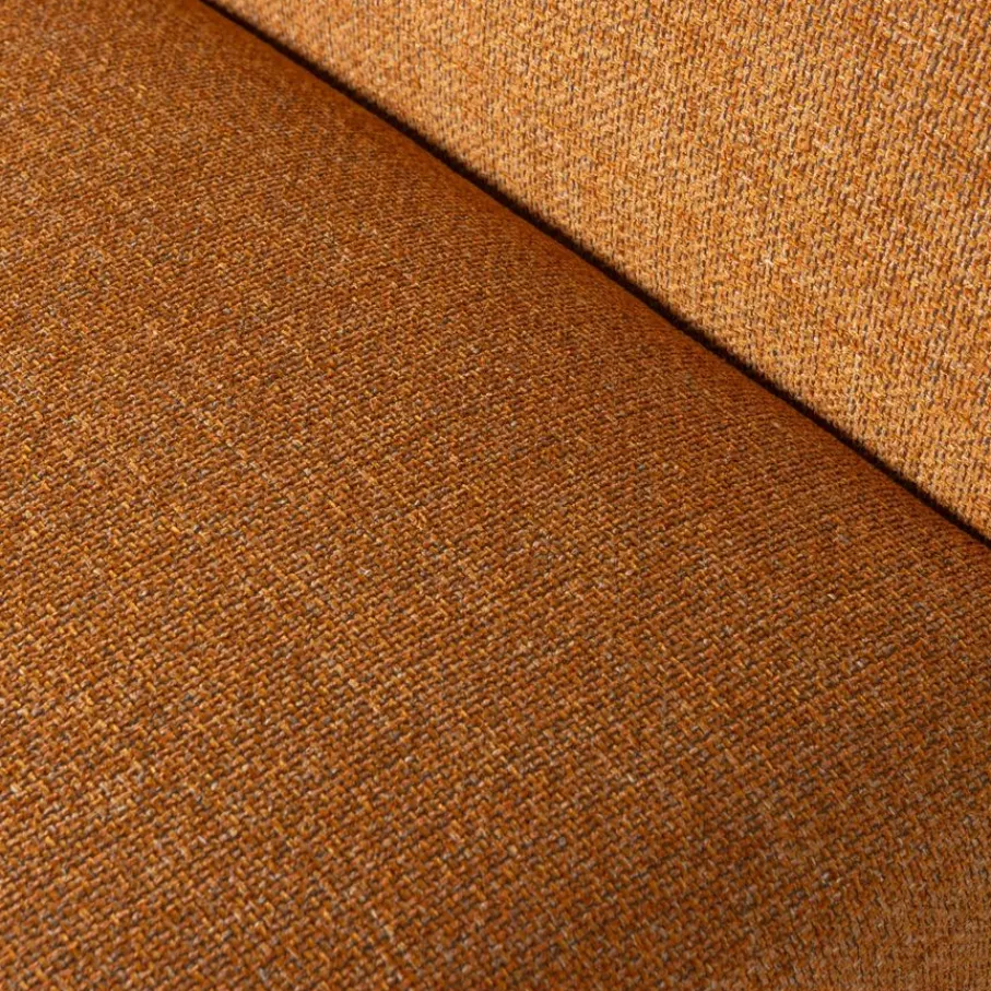 De grof geweven stof voelt heerlijk zacht aan en is gemaakt van 100% polyester. Het duidelijk zichtbare weefpatroon krijgt een extra dimensie door de gemêleerde kleur. Kleur Ginger is een oranje tint met mooie kleurnuances erdoorheen. Deze geweven stof heeft een Martindale van 100.000 en is dus zeer sterk en goed geschikt voor intensief woongebruik. Bij vlekken is het aangeraden om te deppen met een lichtvochtige, schone doek. Houd de geweven stof wekelijks schoon met een speciale meubelborstel op de stofzuiger.