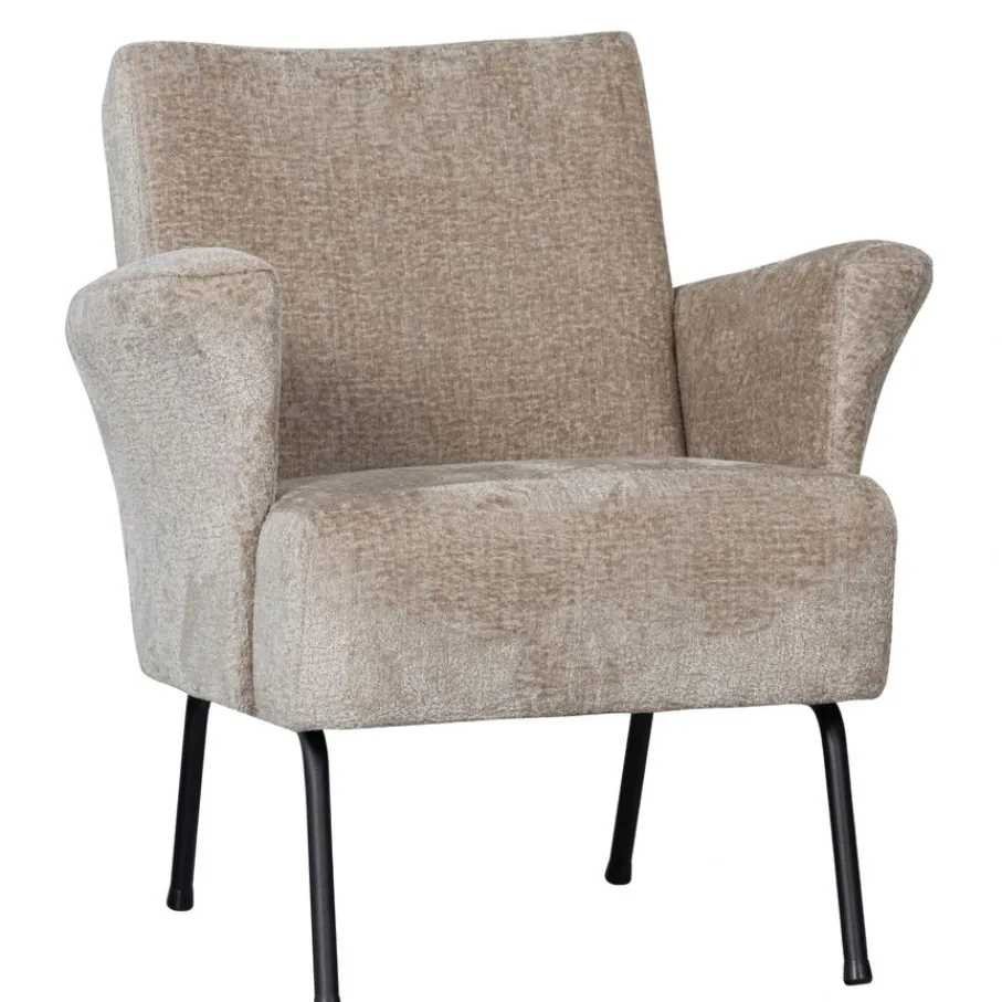 - Modern design met een luchtige uitstraling: Het slanke matzwarte metalen onderstel geeft deze fauteuil een eigentijdse look en laat hem gemakkelijk stralen in jouw interieur.