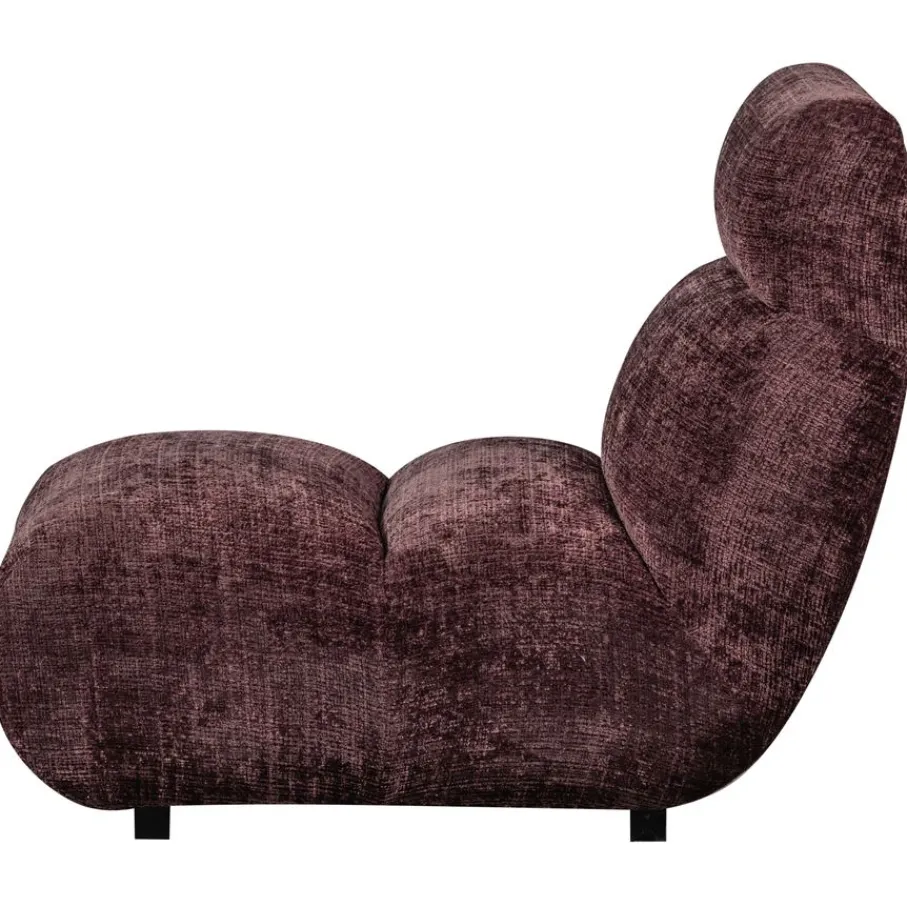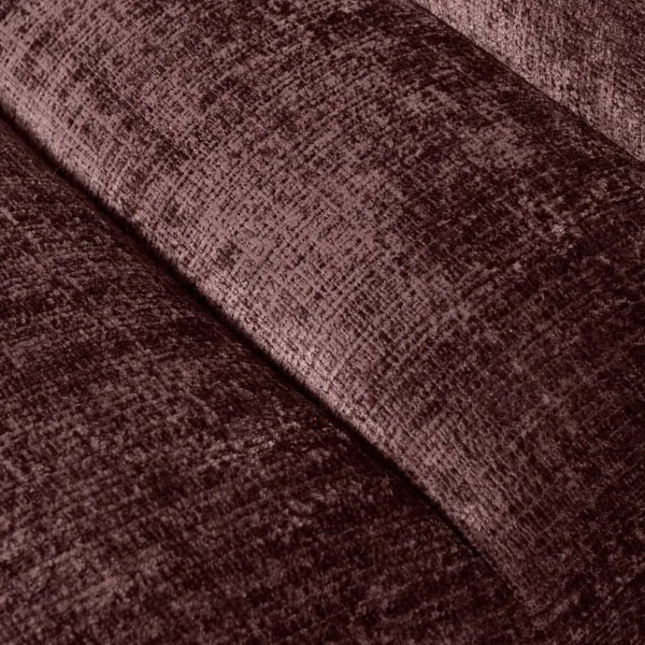 Observe is bekleed met luxe chenille stof met een opvallend grove structuur en bijzondere glans. De Aubergine kleur is een paars/rode tint. De zachte stof is gemaakt van 100% polyester. Het heeft een Martindale van 100.000 en is dus goed bestand tegen lussen, verkleuring en slijtage. Kleine vlekken verwijder je eenvoudig met een vochtige doek. Er kan, na enige tijd, een wat glanzend zitvlak ontstaan.