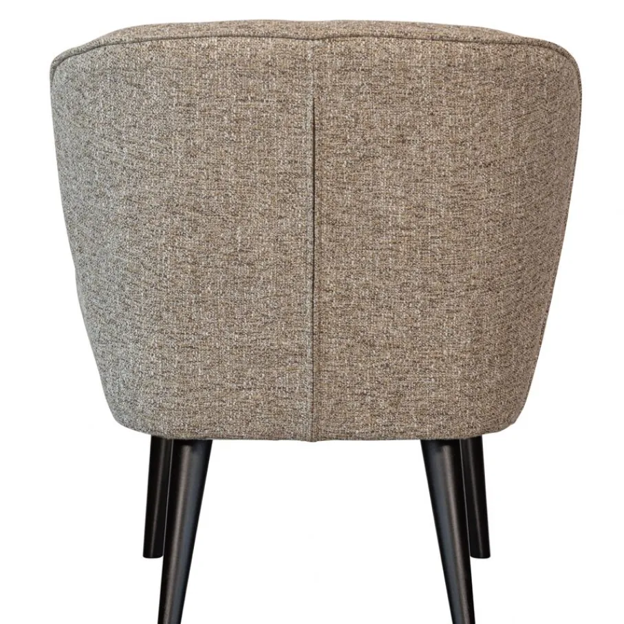 Sara is bekleed met een stof met een grove weving in kleur naturel, een melange van tinten. De stof is van 94% polyester en 6% nylon, en heeft een zachte grip. Met een Martindale van 60.000 is het geschikt voor intensief woongebruik.
