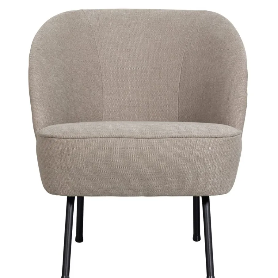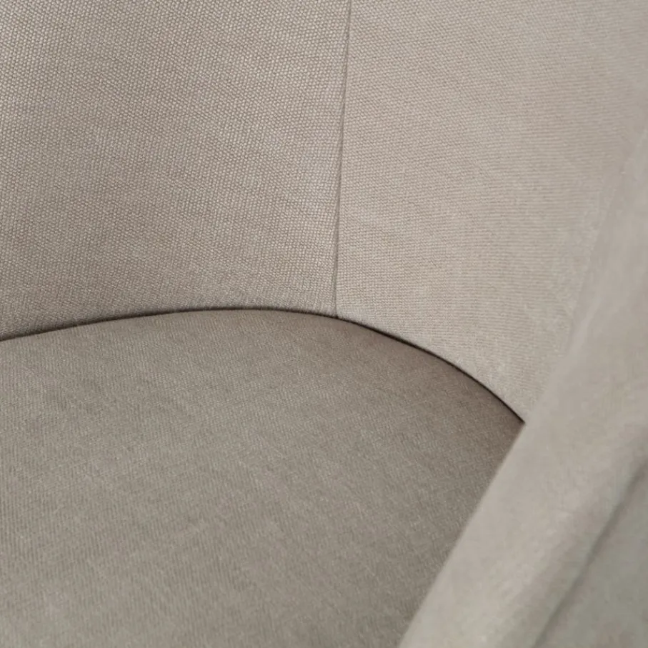 De stoel is bekleed met een stof met een gelijkmatige weving en een elegante beige kleur. Deze zachte stof is gemaakt van 90% polyester en 10% viscose. Het heeft een Martindale van 90.000 en hiermee is het perfect voor woongebruik.