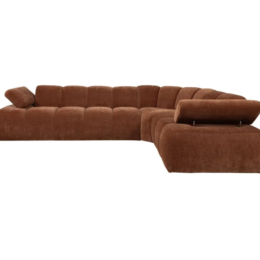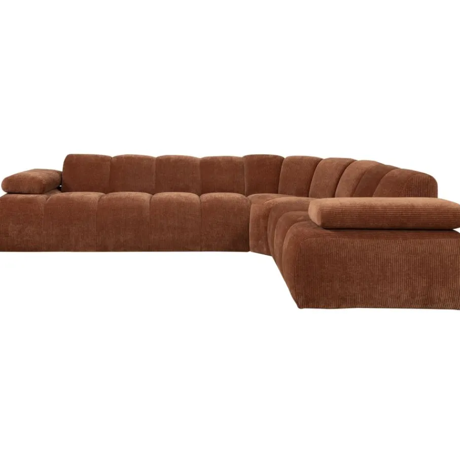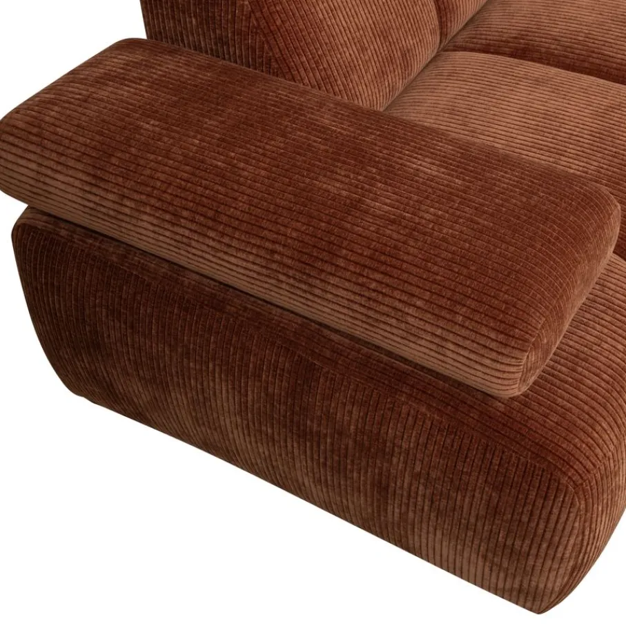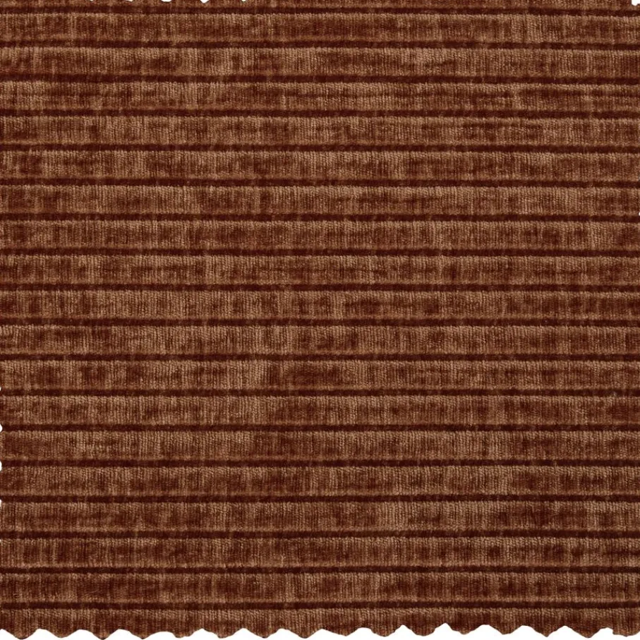 De bank is bekleed met een moderne ribstof met een zachte grip en luxe uitstraling. Deze stof heeft een ribbelstructuur en is gemaakt van 100% polyester. Het heeft een Martindale van 80.000, wat betekent dat de stof geschikt is voor intensief woongebruik. De ribstof in kleur Rust Brown heeft een roestbruine kleur.