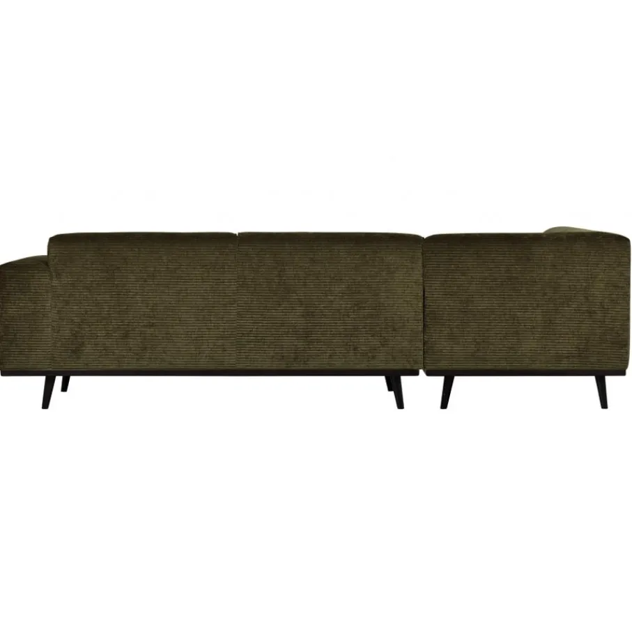 De Statement bank is bekleed met Brama ribstof in een warme groene kleur. Dit is een platte ribstof van zachte chenille garens met een fraaie vleug die zorgt voor mooie kleurnuances en een subtiele glans. De geweven stof is van 53% polyester en 47% polyacryl, een sterke en gebruiksvriendelijke stof. Er kan een lichte zitspiegel ontstaan op de favoriete zitplekken.
