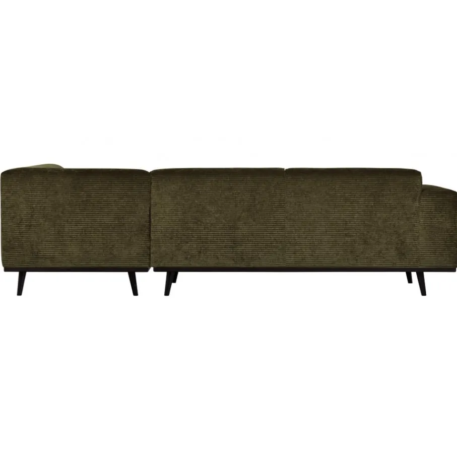 De Statement bank is bekleed met Brama ribstof in een warme groene kleur. Dit is een platte ribstof van zachte chenille garens met een fraaie vleug die zorgt voor mooie kleurnuances en een subtiele glans. De geweven stof is van 53% polyester en 47% polyacryl, een sterke en gebruiksvriendelijke stof. Er kan een lichte zitspiegel ontstaan op de favoriete zitplekken.