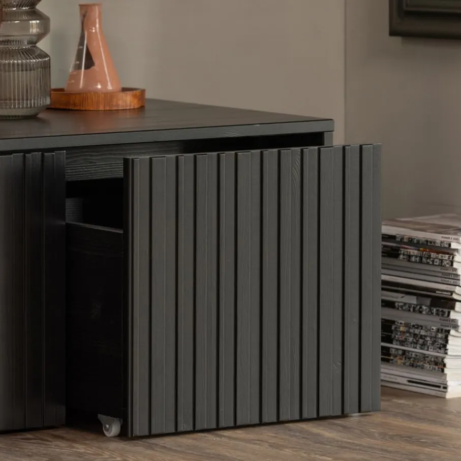 - Geef je interieur een stijlvolle boost met het unieke plissé patroon op de ladefronten, wat zorgt voor een trendy lijnenspel en een elegante uitstraling.
