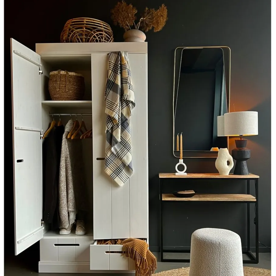 - Houd je spullen super georganiseerd met de slimme indeling van een handige legplank, een royale roede en twee ruime lades voor al je favoriete items.