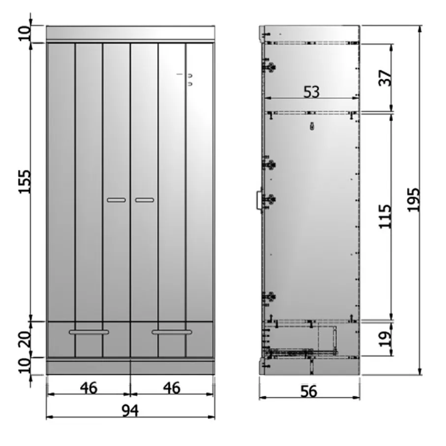 - 2-deurs kledingkast met 2 laden