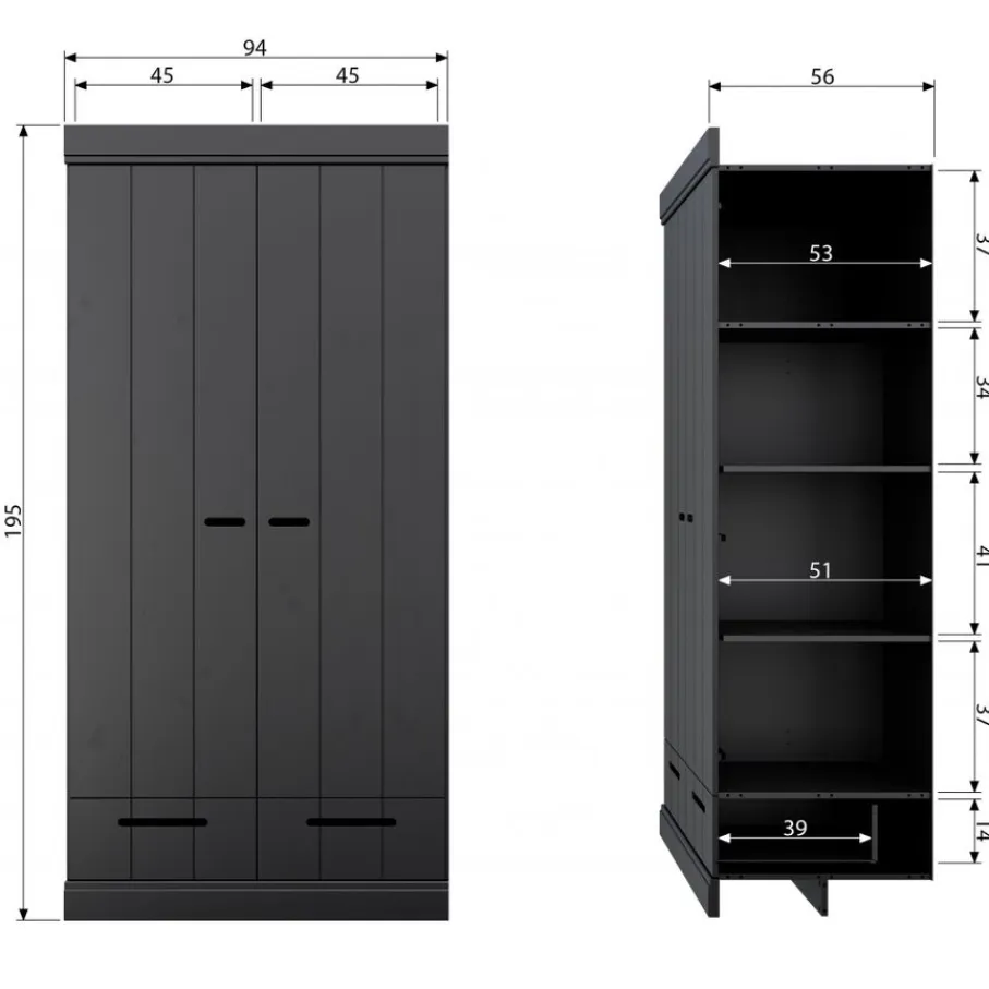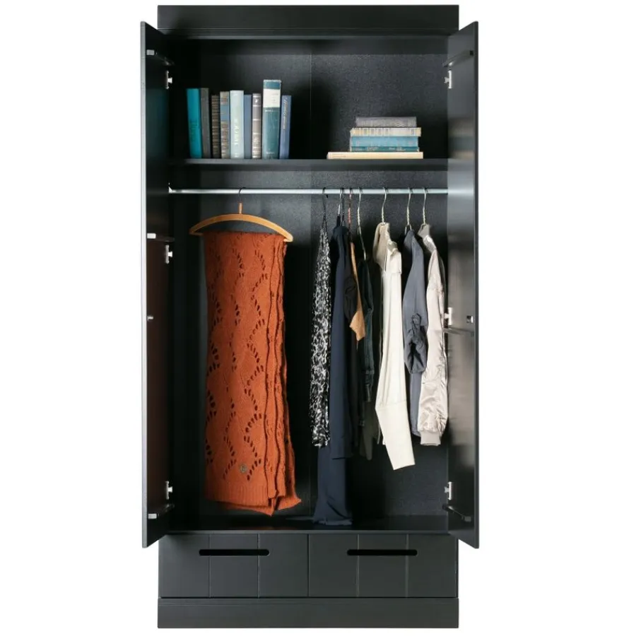 - Geniet van slimme opbergruimte dankzij de handige indeling met een roede, legplank én twee ruime lades voor al je spullen.