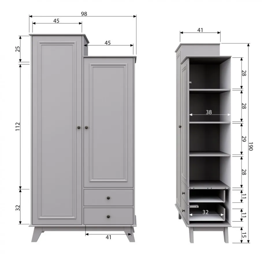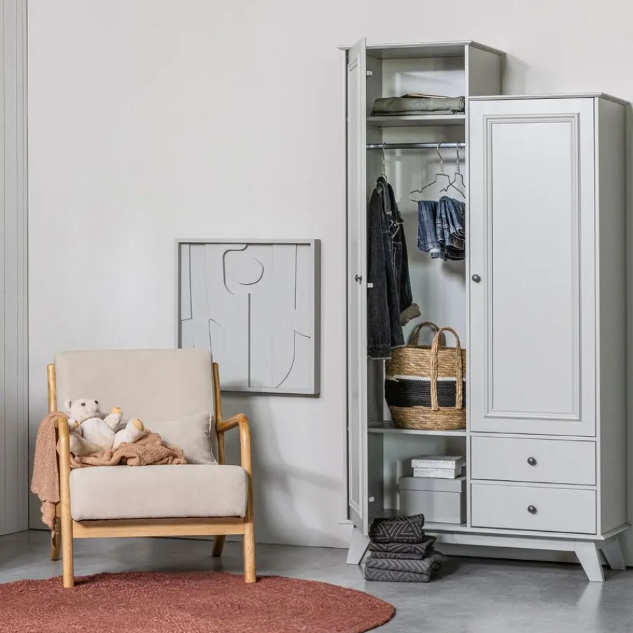- Geniet van de perfecte mix van opbergen en ophangen met een handig hanggedeelte, drie legplanken én twee ruime lades voor al je kleding.