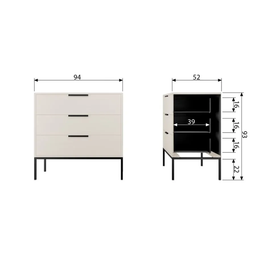Met maar liefst 3 laden biedt ladekast Adam lekker veel opbergruimte. Elke lade is 90 cm breed, 39 cm diep en 16 cm hoog. Het draaggewicht per lade is 15 kg.