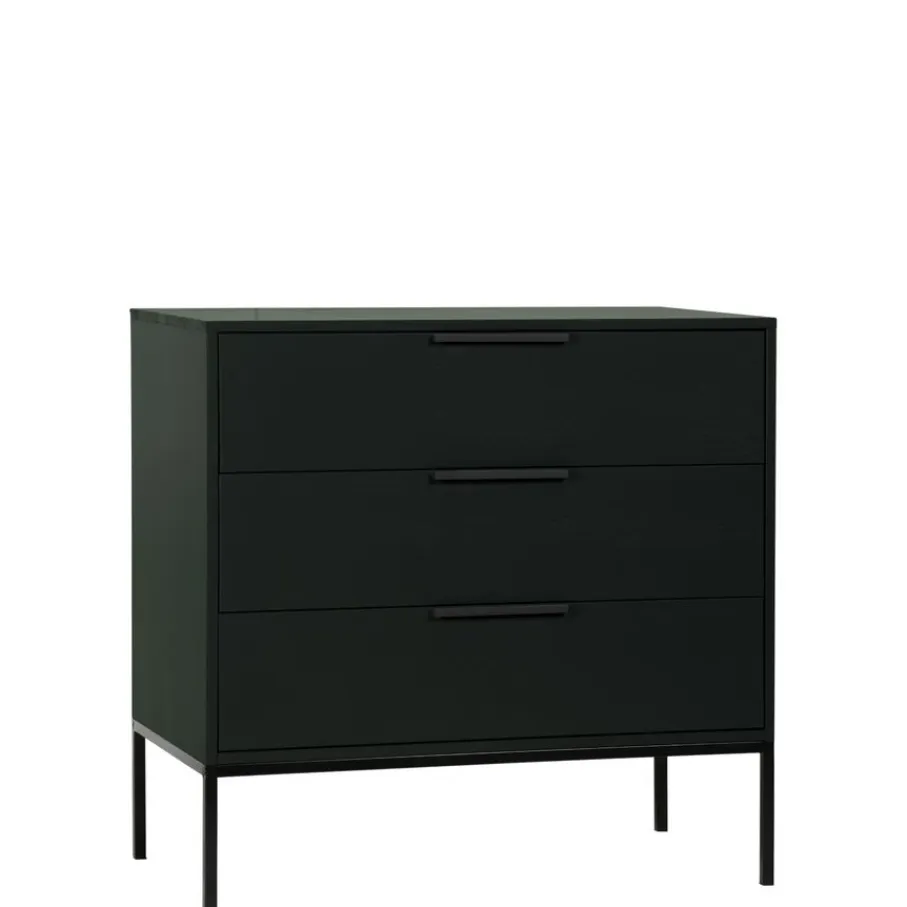- Voeg een luchtig en elegant accent toe met het slimme zwarte metalen onderstel, waardoor de ladekast als het ware boven de grond zweeft!