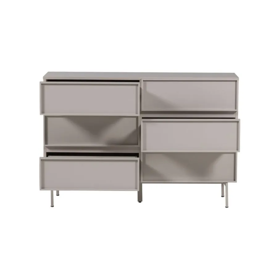 - De elegante ton-sur-ton look, met de zandkleurige metalen poten, geeft deze ladekast een uniek en verfijnd karakter.