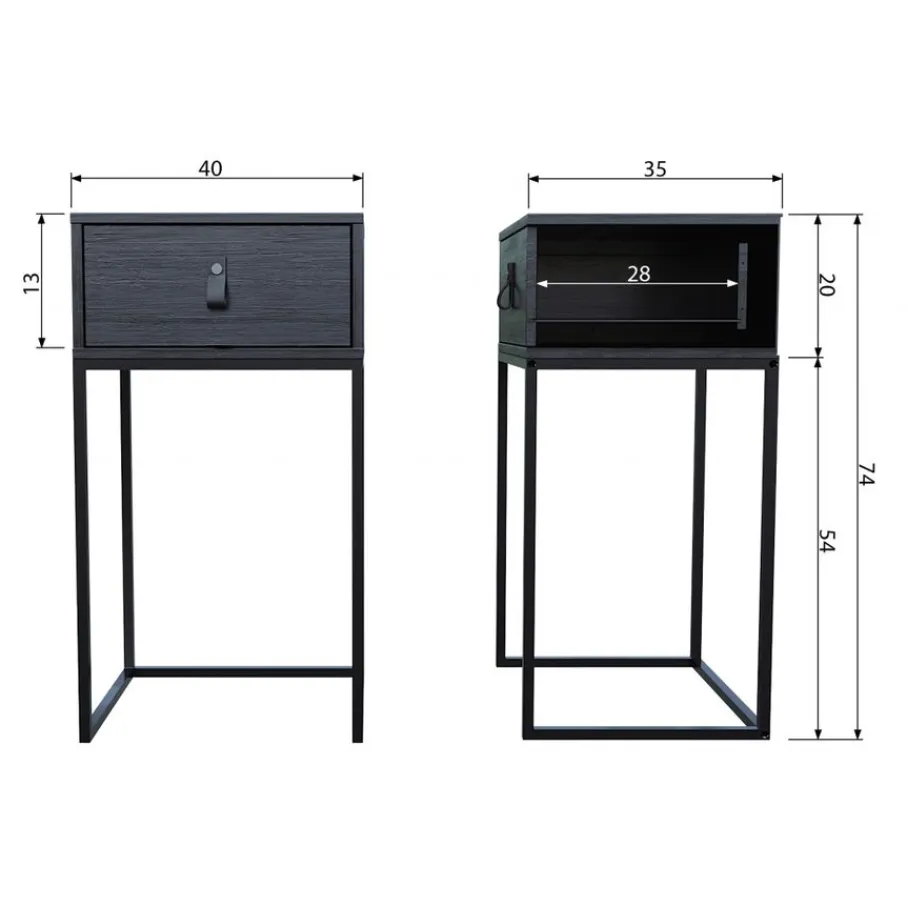 - Stijlvol tot in de puntjes: Het slanke metalen onderstel en het stoere leren detail op de lade en deur geven Zola een eigenzinnige en trendy touch.