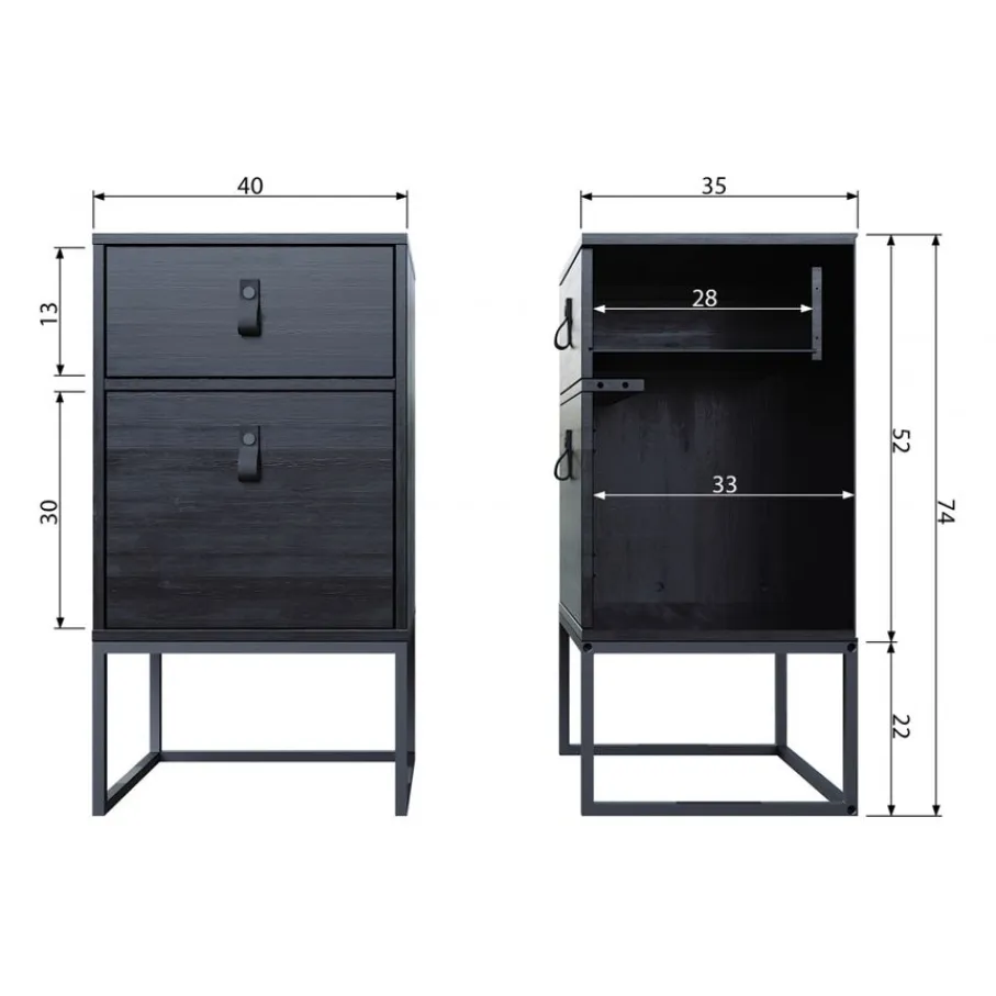 - Subtiele details die het verschil maken: Het stoere metalen onderstel en het chique leren detail op de deur en lade geven Zola een extra luxe touch.