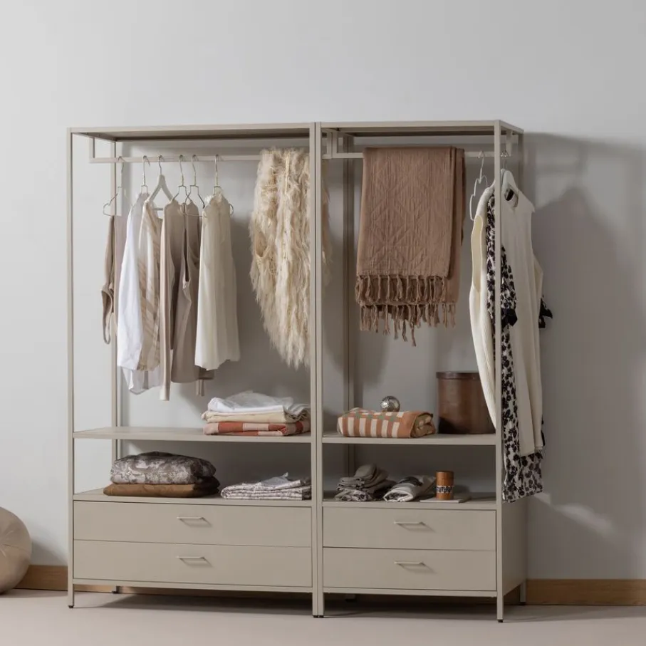 - Voor wie graag alles uit het zicht opbergt, is het goed om te weten dat dit een open kledingrek is.