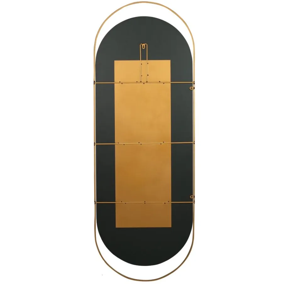 Spiegel Sanou is 60 cm breed en 168 cm hoog. Het frame is van metaal in goudkleur. Op het metalen frame zijn 2 ophanghaakjes bevestigd, waardoor de spiegel in de lengte en in de breedte kan worden opgehangen.