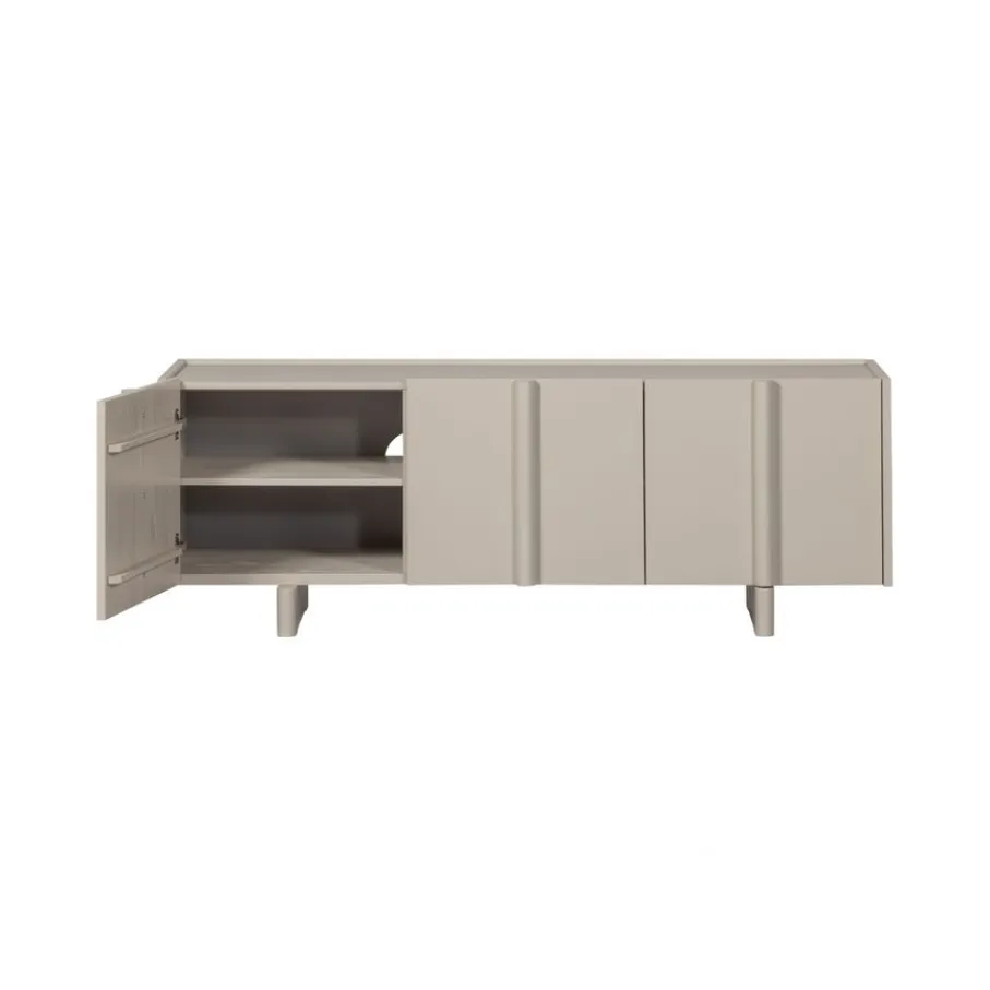 Het tv-meubel heeft een enkel- en een dubbeldeurs vak, met in totaal 3 deuren. In ieder vak zit een plank ter vakverdeling, waardoor er vakken ontstaan van 48 cm breed en 19 cm hoog. Elke plank heeft een draaggewicht van 15 kg.