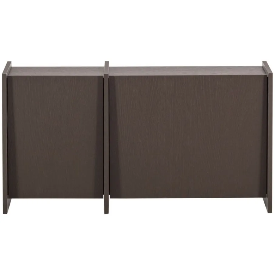 Achter de twee deuren bevinden zich compartimenten met elk een legplank, wat zorgt voor voldoende opbergruimte. Aan de achterzijde is elk compartiment voorzien van een kabeldoorvoer, zodat je snoeren netjes kunt wegwerken. Het meubel heeft een maximaal draaggewicht van 45 kg.