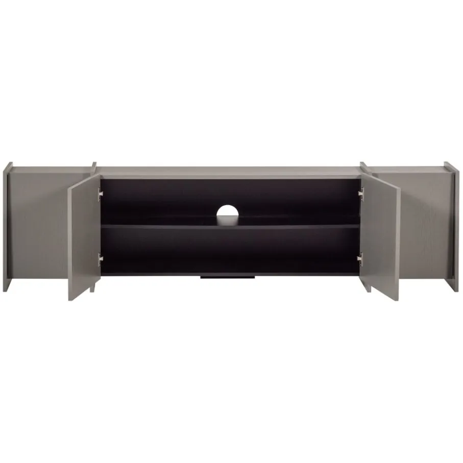 Achter de vier deuren vind je volop opbergruimte, verdeeld over drie compartimenten. Het middelste, brede compartiment is uitgerust met een legplank en een handige kabeldoorvoer in de achterwand, ideaal voor je media-apparatuur. De twee buitenste compartimenten hebben elk ook een legplank. Het meubel heeft een totaal draaggewicht van 45 kg.