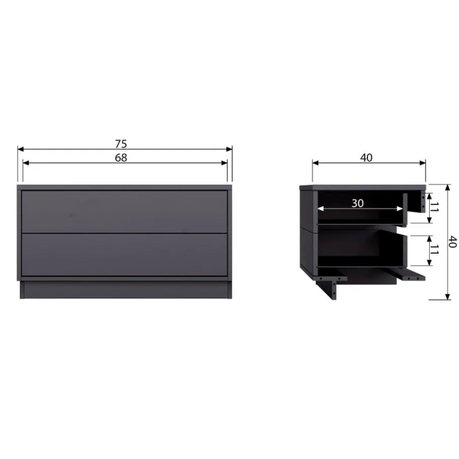 Het Finca tv meubel heeft 2 greeploze lades, deze zijn voorzien van een luxe push-to-open systeem. Iedere lade heeft een draagkracht van maximaal 10 kg wanneer het gewicht gelijkwaardig verspreid is. De onderrand van het Finca tv meubel laat aan de voorzijde 7 cm ruimte, hierdoor lijkt het alsof het meubel zweeft. Dit oogt ruimtelijk en slank in je interieur.