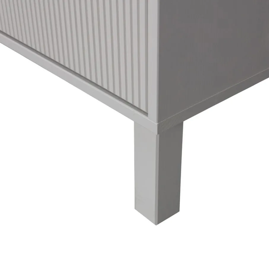 - Geef je woonkamer direct een stijlvolle boost met dit moderne tv-meubel, dankzij de chique goudkleurige knoppen en het trendy verticale patroon.