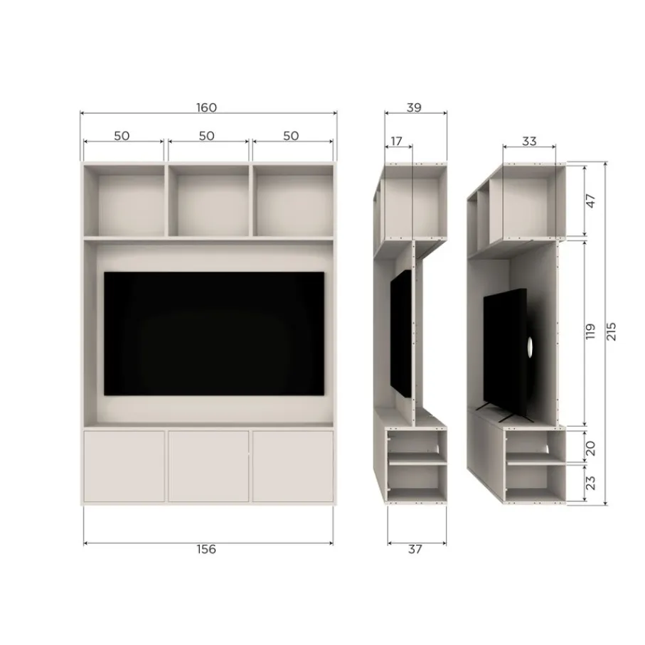 - Jouw tv staat altijd perfect centraal met de ruime plek in het midden, waardoor functionaliteit en een fijne sfeer hand in hand gaan.
