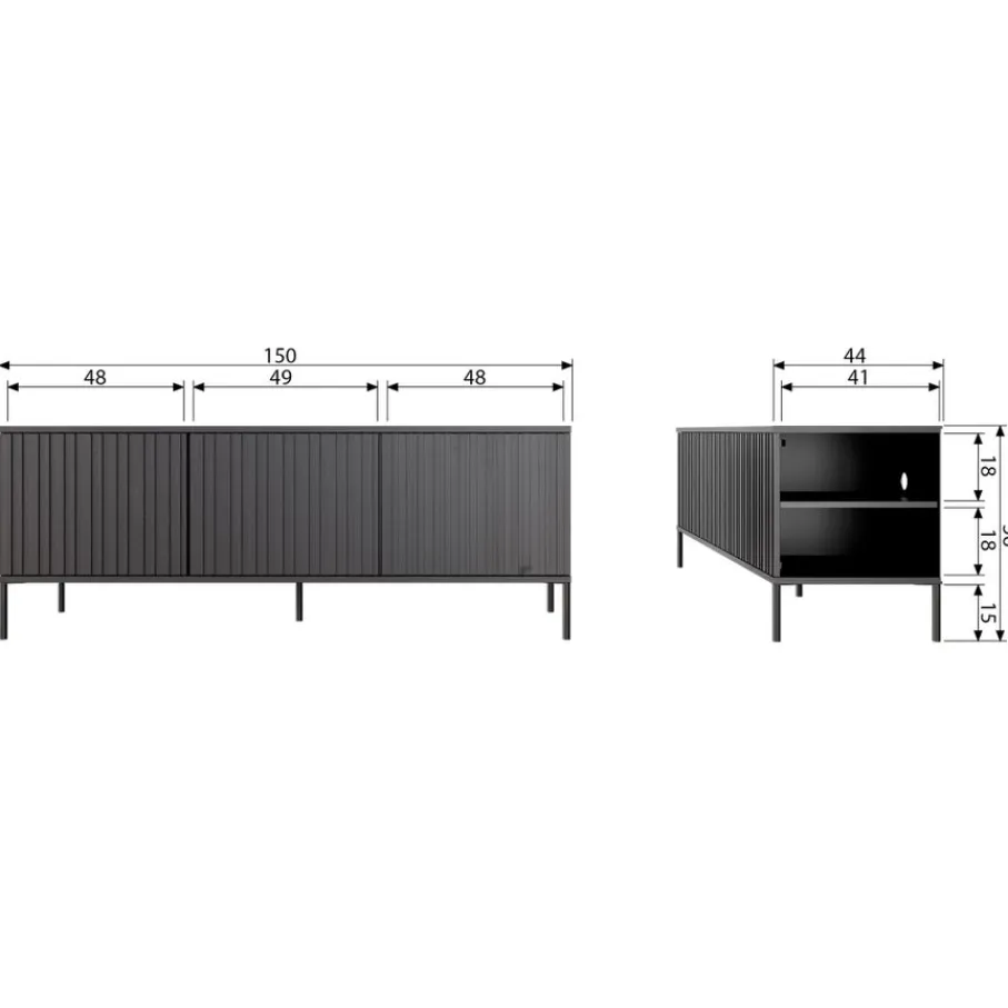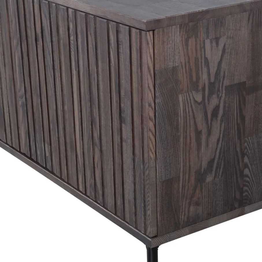 - Geef je woonkamer direct een stijlvolle make-over met dit moderne tv-meubel, compleet met een elegant plissé patroon op de massief essen houten deuren.