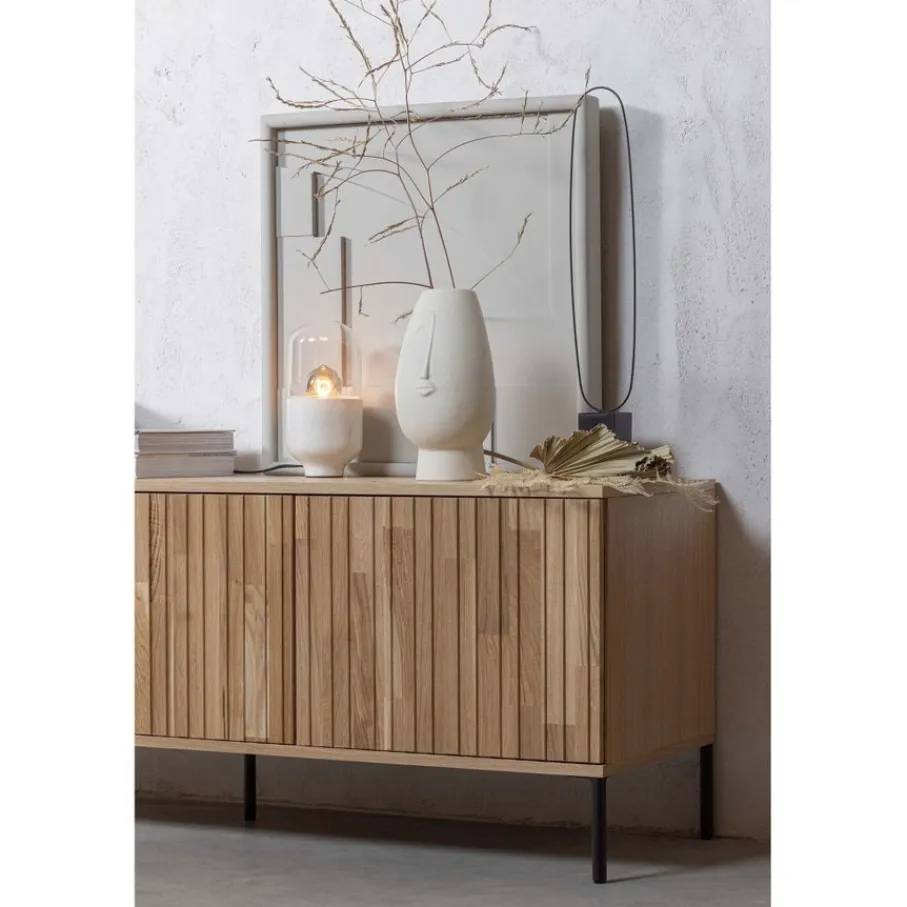 - Deze kast biedt enkel gesloten opbergruimte, dus voor je mooiste woonaccessoires is een plekje bovenop perfect.
