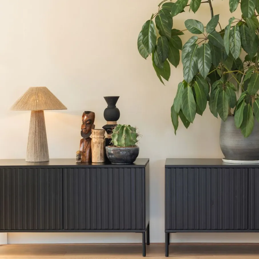 - Deze kast biedt enkel gesloten opbergruimte, dus voor je mooiste woonaccessoires is een plekje bovenop perfect.