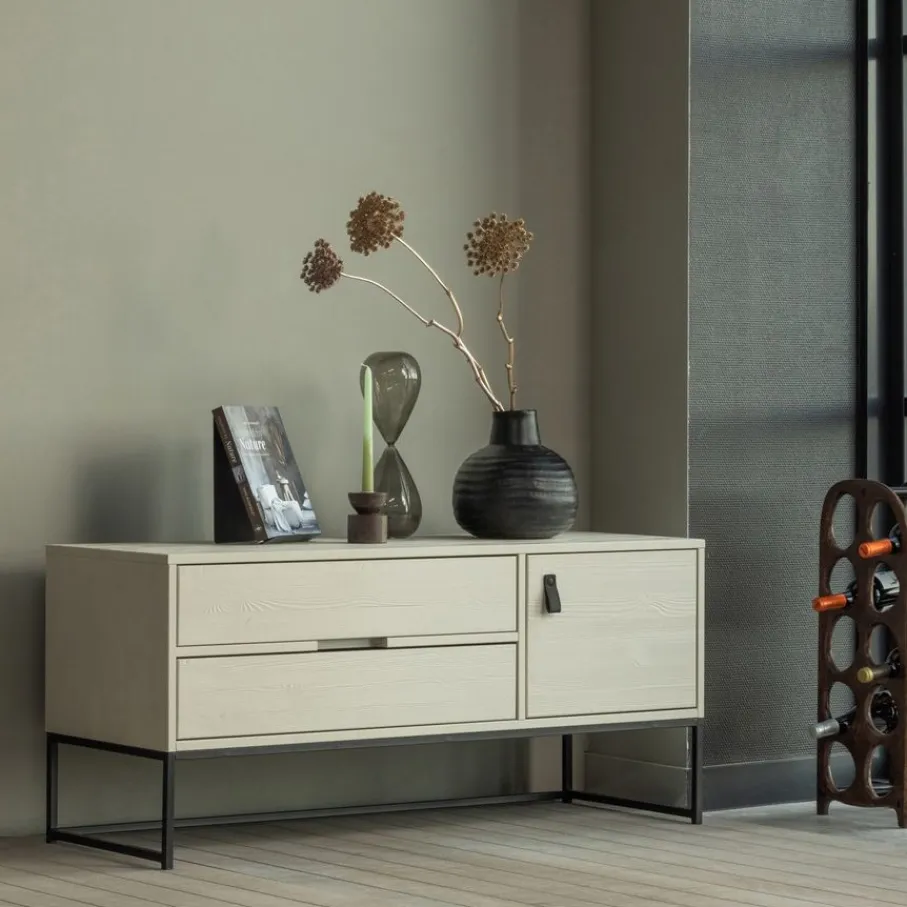 - Houd je woonkamer heerlijk opgeruimd dankzij de twee ruime lades en een praktisch vak met deur, ideaal om al je spullen uit het zicht op te bergen.
