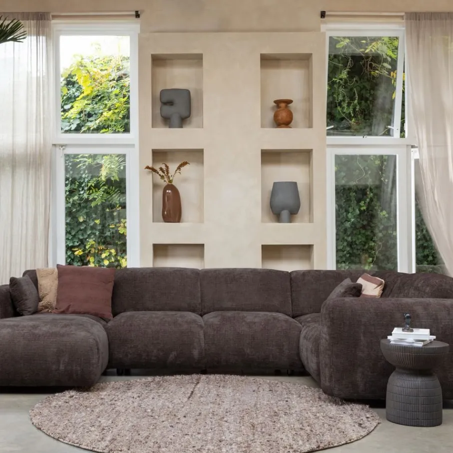 - De ronde vorm doorbreekt strakke lijnen en voegt zachtheid toe. Perfect om een knusse zithoek te creëren of je slaapkamer net dat beetje extra sfeer te geven.