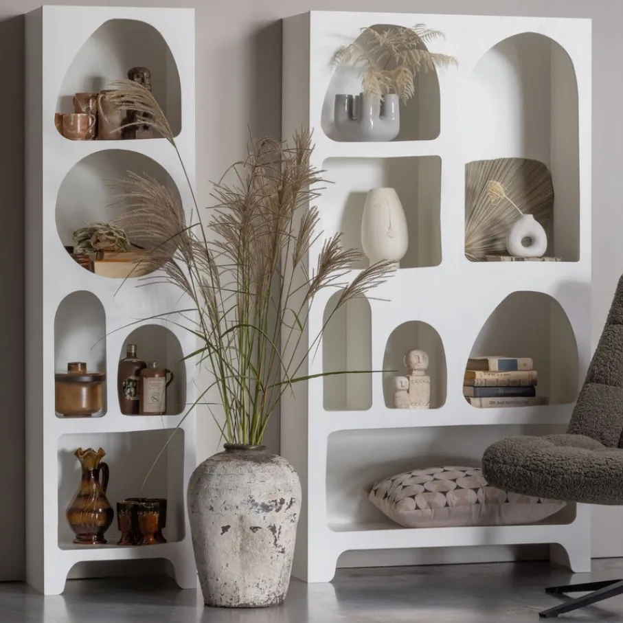 - Geef je interieur een creatieve boost met de unieke organische vormen van wandkast Caz, een echte eyecatcher die direct de aandacht trekt.