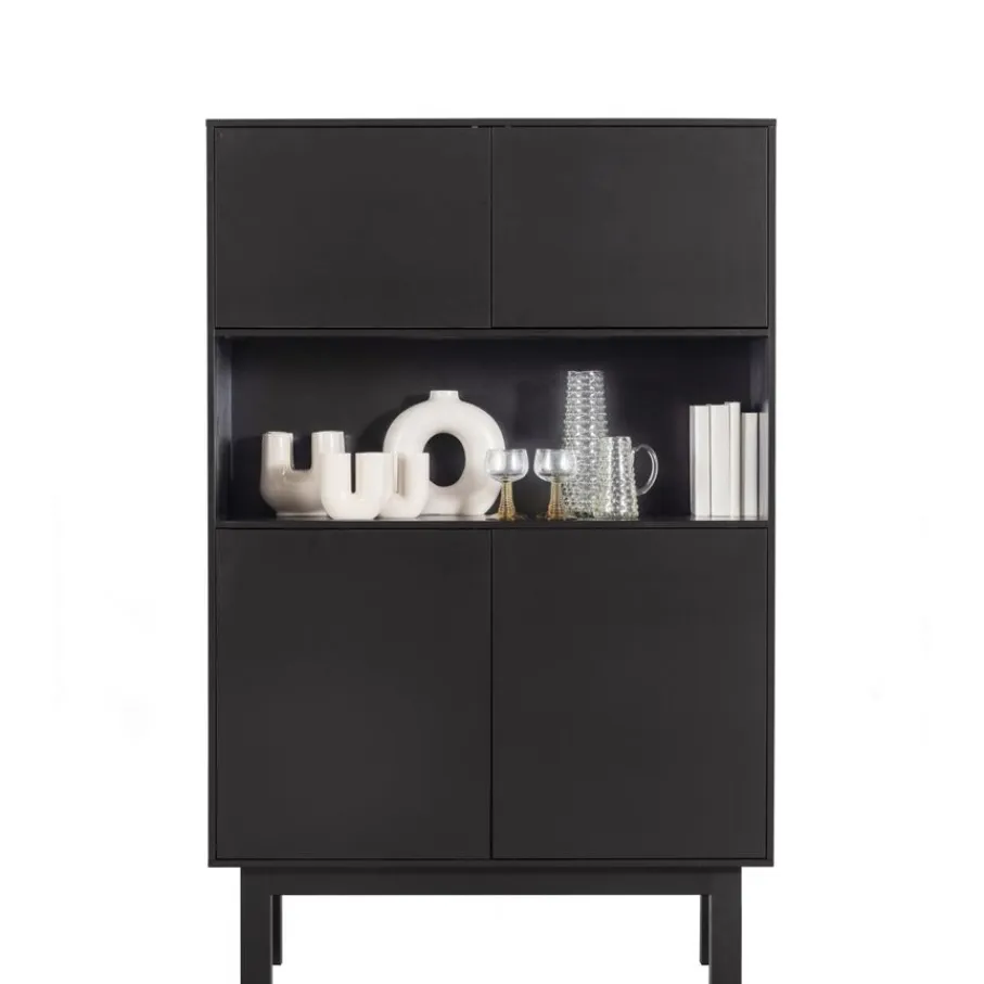 - Geef je interieur een stijlvolle boost met deze tijdloze, diepzwarte wandkast die jouw woonkamer direct een moderne en gezellige uitstraling geeft.