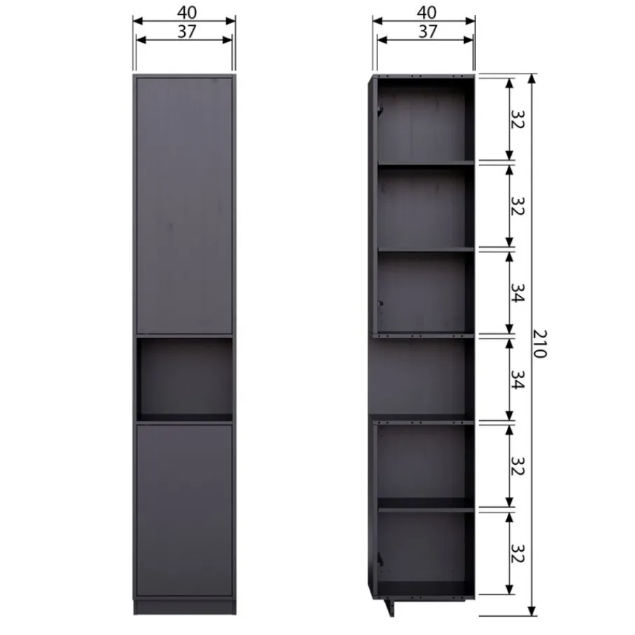 - Deze kast is perfect voor gevouwen spullen en decoratie, maar heeft geen ingebouwde lades of een hanggedeelte.