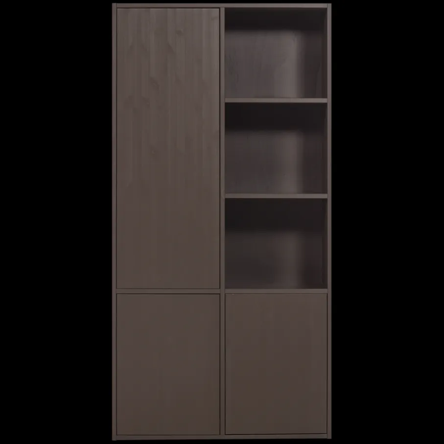 Wandkast Meggy van woonmerk WOOOD heeft een stijlvolle uitstraling en royale opbergmogelijkheid. Aan de rechterzijde zijn drie open vakken, ideaal om decoratieve items of je favoriete boeken te etaleren. De linkerzijde is voorzien van een lange kast met deur, waarin je spullen uit het zicht kunt opbergen. Perfect voor wie graag een opgeruimd, stijlvol én persoonlijk interieur wil creëren. Dit prachtige wandmeubel is gemaakt van FSC-gecertificeerd grenenhout en heeft een afwerking in een moderne middenbruine tint.
