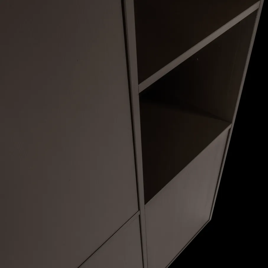 Wandkast Meggy biedt een combinatie van open en dichte vakken, perfect voor etaleren en opbergen. De dichte vakken hebben er een deur voor, deze zijn greeploos en voorzien van een modern push-to-open systeem.
