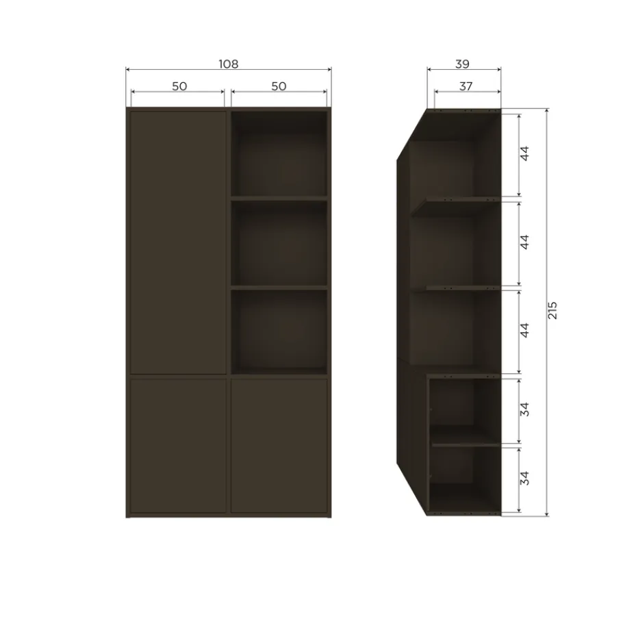 - Laat je mooiste decoratie en favoriete boeken stralen in de speelse open vakken aan de rechterzijde.