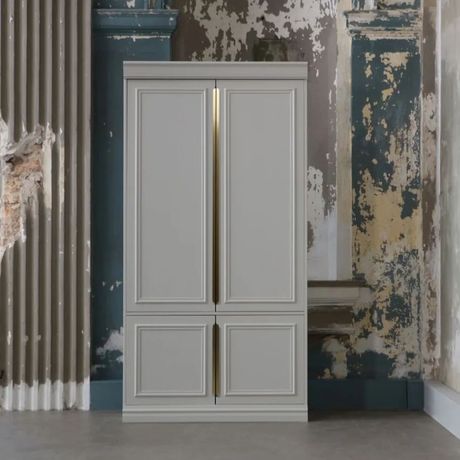 - Geef je interieur direct een chique boost met deze wandkast die klassieke elegantie combineert met een trendy uitstraling, compleet met prachtige sierlijsten en luxe handgrepen.