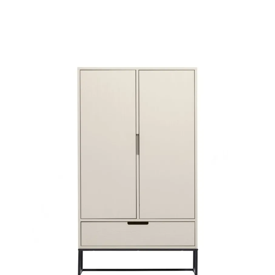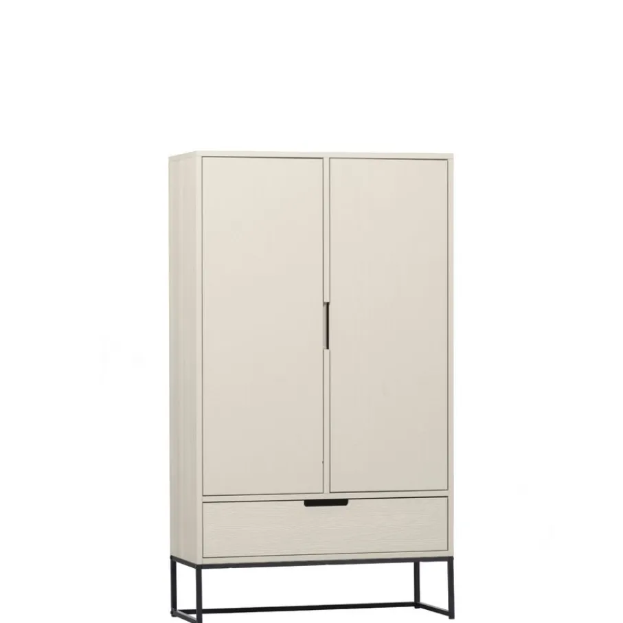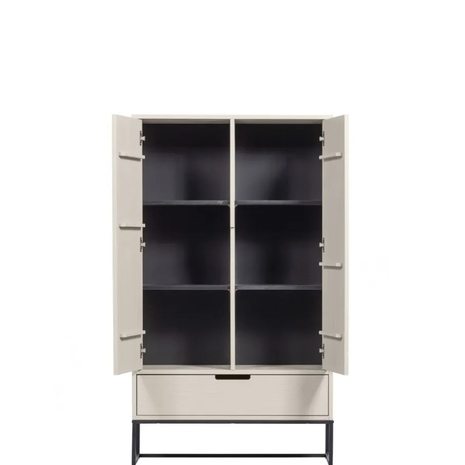 - Creëer een luchtige en elegante sfeer met het hoge, zwarte metalen onderstel dat de kast een zwevende uitstraling geeft.