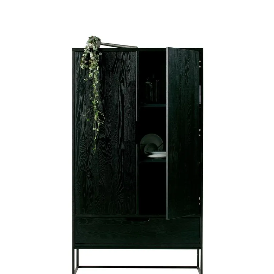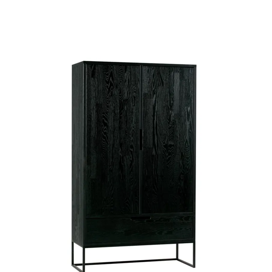 Wandkast Silas van woonmerk WOOOD heeft een moderne, elegante look. De kast biedt veel plek om je spullen in op te bergen en door de speelse hoogte van 149 cm, is het leuk om de kast te decoreren met mooie vazen of een lamp. Silas is gemaakt van geborsteld massief essenhout, dat is afgelakt in de kleur blacknight. Het zwart metalen frame heeft een luchtige look en is bovendien praktisch met schoonmaken.