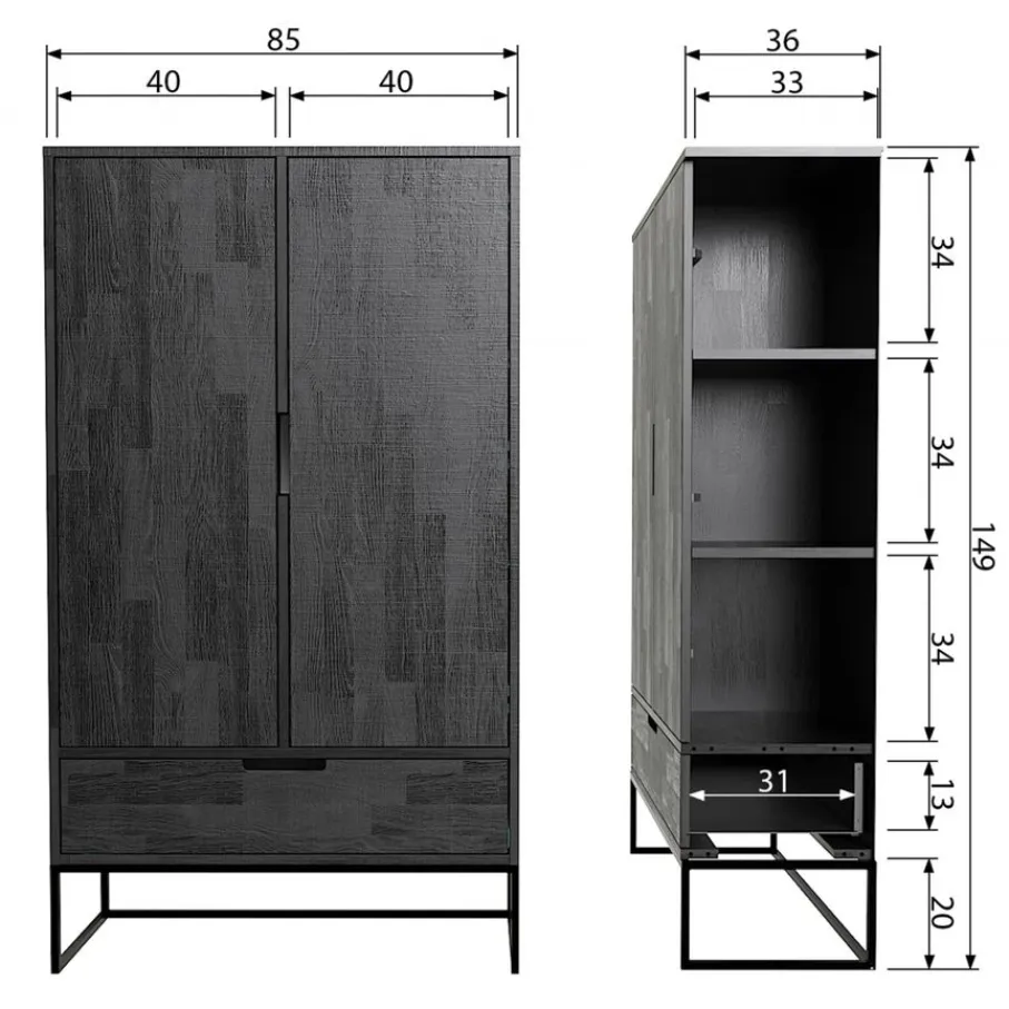 - Afmeting 85×35,5 cm en 149 cm hoog