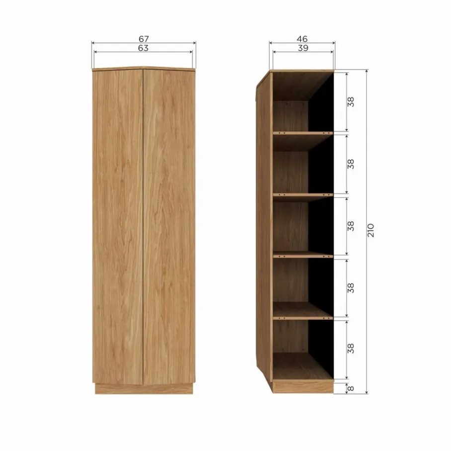 De hoge wandkast heeft ruime opbergvakken, ideaal voor het organiseren van alles wat je uit het zicht wilt hebben. De greeploze deuren zijn voorzien van een luxueus push-to-open systeem. De kast heeft er 4 planken in. Hierdoor ontstaan 5 vakken met een afmeting van 63 cm breed en 38 cm hoog. Het draaggewicht per plank is 10 kg, mits gelijk verdeeld.
