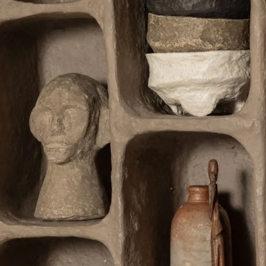 - Houd er rekening mee dat dit decoratieve rek van papier-maché niet in aanraking mag komen met water, dus vermijd vochtige ruimtes.