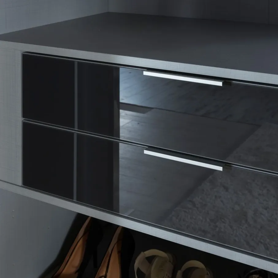 - Luxueuze flair: De stijlvolle donkergrijze glasfronten geven jouw Tudela kast een chique en moderne uitstraling, voor een echt hotelgevoel in huis.