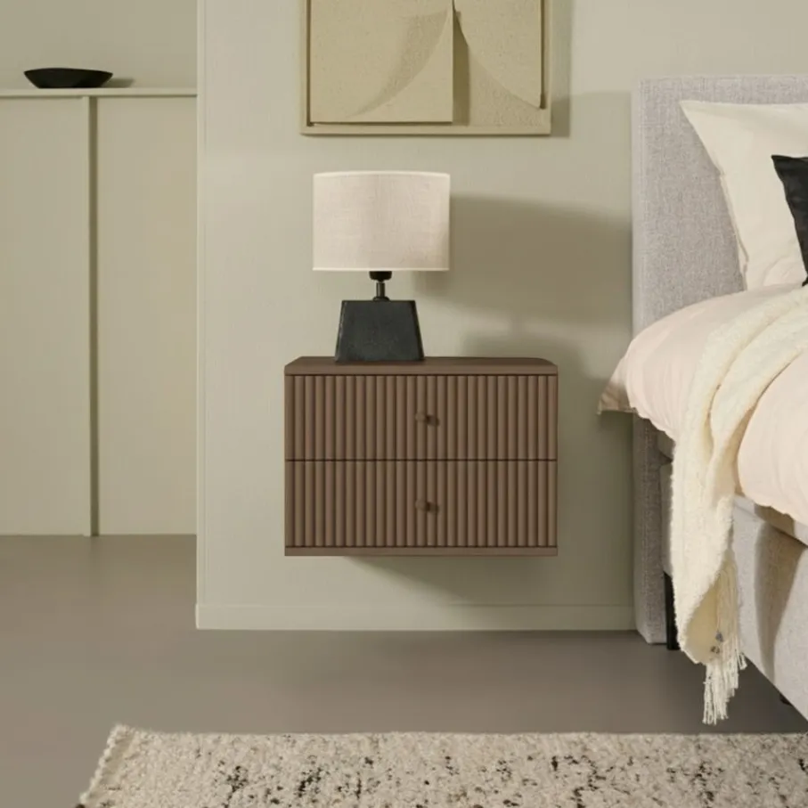Nachtkastje Sem is voor gemonteerd, maar het moet wel nog aan de wand gemonteerd worden. Dat werkt eenvoudig, met een houten lat die je aan de wand monteert. Deze lat vormt één deel van een halfhoutverbinding, het andere deel zit aan het kastje zelf. Bij het ophangen van het nachtkastje aan de lat schuiven de twee houten delen over elkaar, perfect voor een stevige verbinding. Hiermee wordt het ophangen van nachtkastje Sem een makkelijk klusje.
