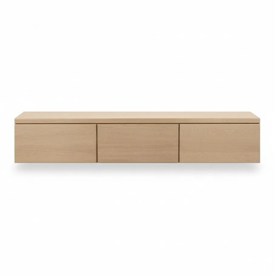 - Geef je woonkamer direct een luxe boost met dit prachtige zwevende tv-meubel, een echt statement in naturel eikenhout.