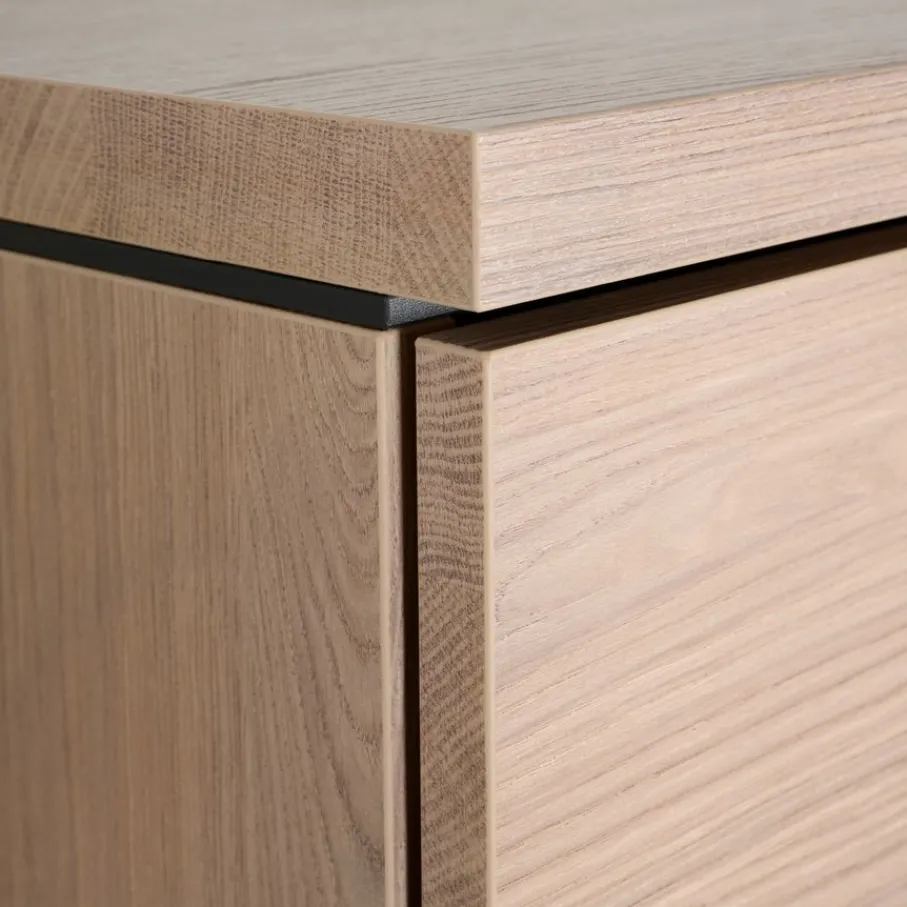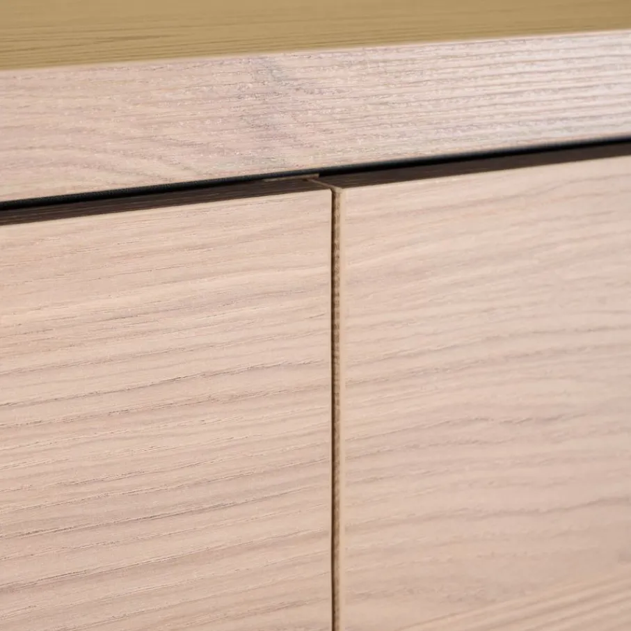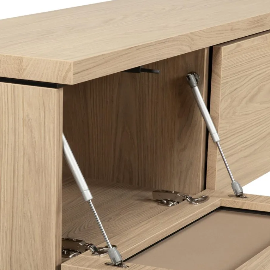 TV-Meubel Vista is niet alleen een lust voor het oog, maar ook praktisch en functioneel. Het biedt plek voor je tv en er is ook een opening in het blad voor kabeldoorvoer. Verder zijn er twee dichte vakken die zorgen voor opbergruimte. Ze worden afgesloten met klepdeuren zonder grepen. Het sluitmechanisme combineert comfort en gemak, dankzij het soft close en push-to-open systeem.