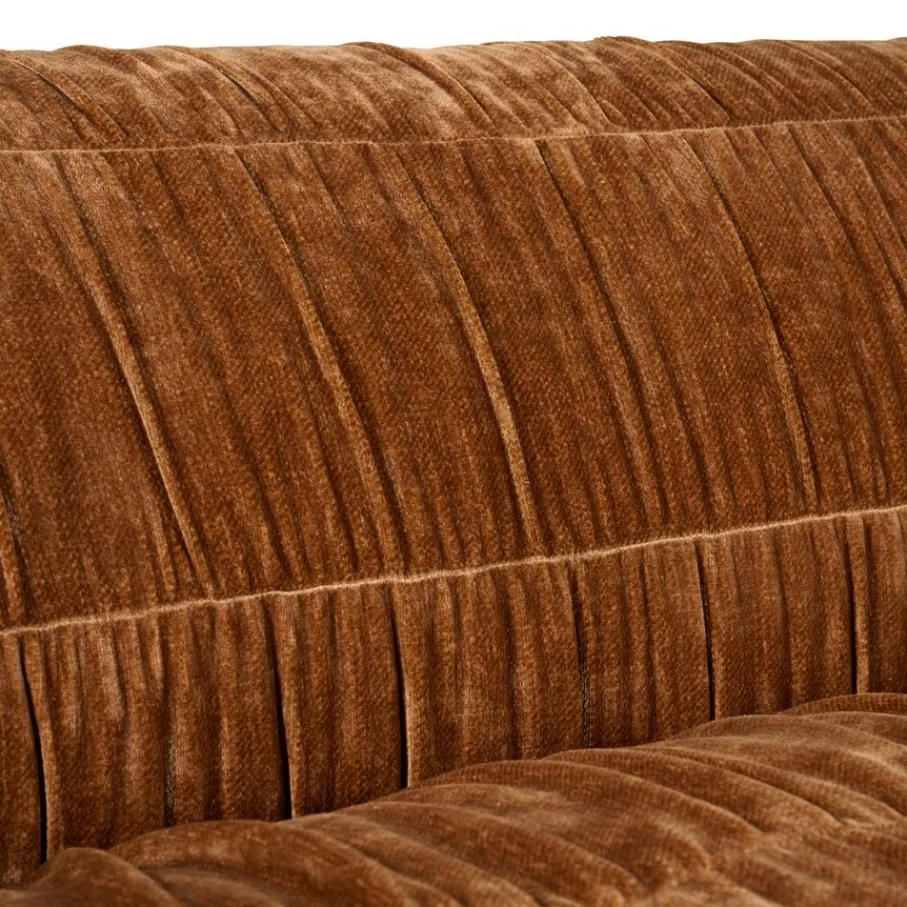De bank is bekleed met een zachte chenille stof. Dit materiaal is gemaakt van 100% polyester en hiermee is het sterk en goed kleurvast. De kleur Bronze is een rijke bruintint die makkelijk combineert en de vleug zorgt voor een elegante kleurnuance.